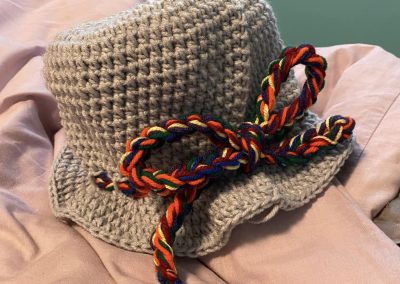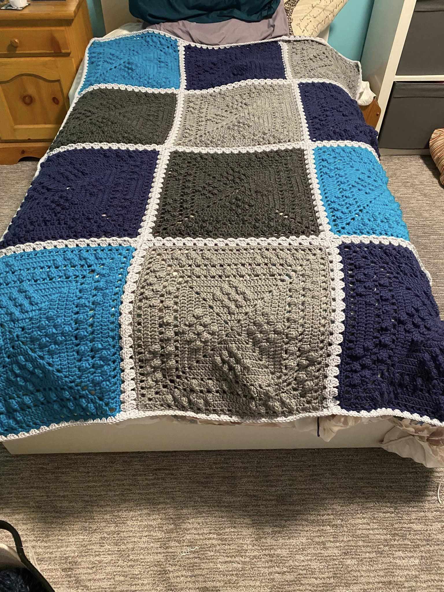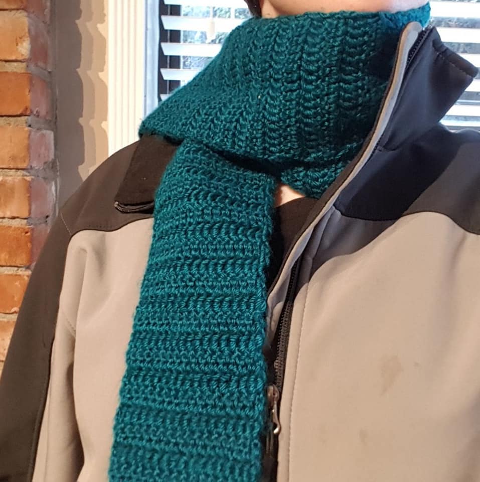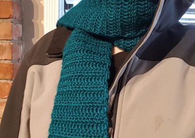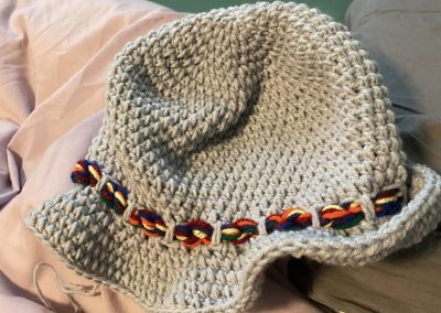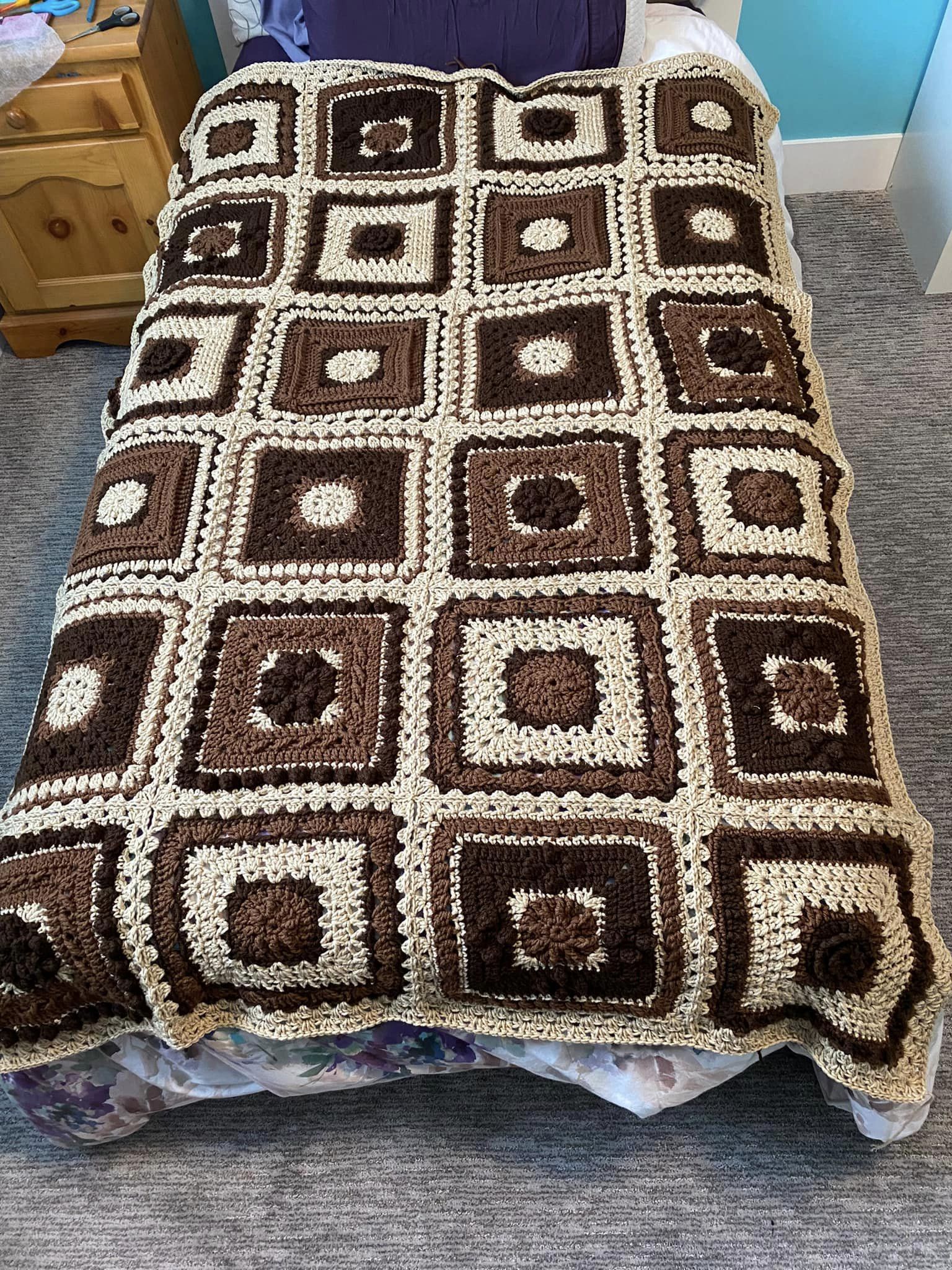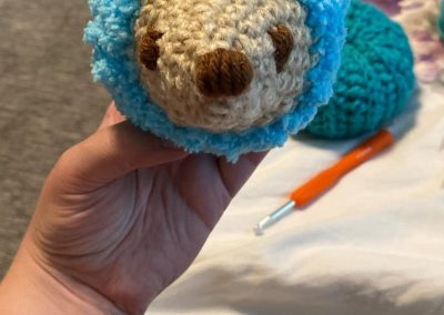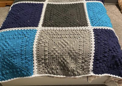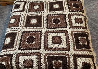Madison began quilting in middle school, and has been a master of many needle crafts since. She crochets and knits a variety of things, including the shawl you see her in to the right. She has also won awards at local quilt shows.